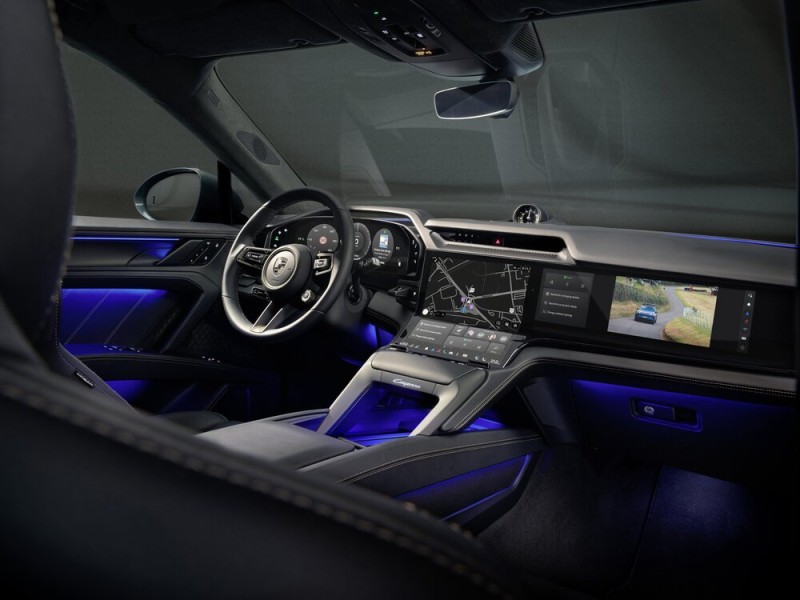 全新 Porsche Digital Interaction 操作概念为保时捷数位化的重要里程碑。其中核心亮点 Flow Display 採用曲面 OLED 萤幕,优雅延伸至中控台,营造出独特而直觉的操作介面。搭配额外显示萤幕,形成历来保时捷车型中最大的一体式数位萤幕。14.25 吋 OLED 全数位仪表提供动力输出、导航、驾驶辅助与娱乐资讯。选配的 14.9 吋乘客资讯娱乐显示萤幕可于行驶间操作应用、影音串流,并不影响驾驶。纯电 Cayenne 亦首度搭载具扩增实境技术(AR)的抬头显示器,将导航箭头与车道指引投射至驾驶视野,有效显示范围达 87 吋。