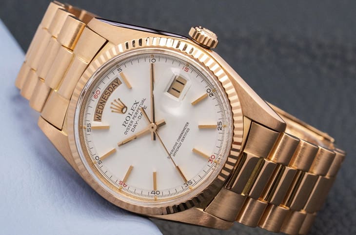 Day-Date几乎是金表的代名词,黄金的重量感与闪耀光泽,让试戴的瞬间就能理解贵金属的魅力,手表具有招牌的三角坑纹表圈、全写星期视窗与隐藏式表扣,将劳力士的实用与尊贵融合得恰到好处,成为身份与气场的完美象徵。
