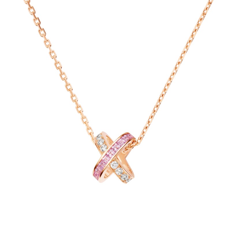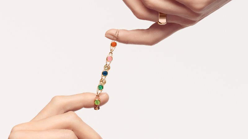 适逢洋溢欢乐与温情的十月,Chaumet 特为所有伴侣们献上别具意义的虹彩祝福。Jeux de Liens 系列项链首次匯聚各色珍贵宝石,包含石榴石、锰铝榴石、芬达石、沙弗莱石、黄水晶、橄欖石、蓝宝石、紫水晶、以及粉色刚玉,交织成一道斑斕夺目的彩虹。镶嵌彩色宝石的金属圆圈,与散发纯净光彩的钻石圆圈彼此交错连结,构成一个「无限 ∞」符号,寓意爱永不朽,直至永恆。