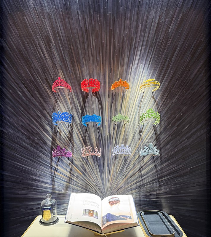 同时,Chaumet 特别选在台北的101专卖店,限时展出全球唯一一组特制的彩虹冠冕模型。店内原有的银镍骨董冠冕模型转变为一面色彩斑斕的彩虹冠冕墙,让进店顾客们可以在这面蕴涵美好意义的背景前拍照留念,记录意义非凡且令人骄傲的时刻。