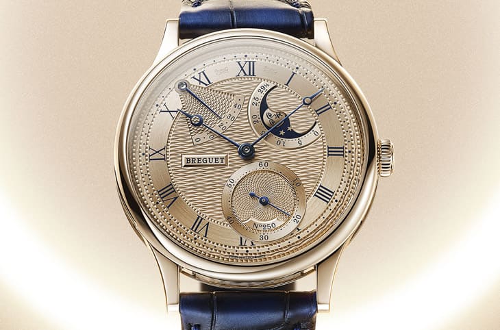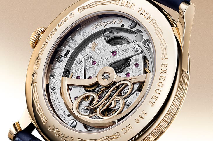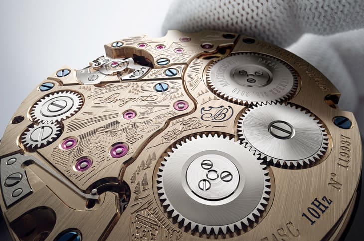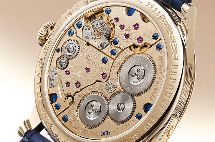 更令人玩味的是,当机芯全速运作时,擒纵轮会呈现交替闪现的1775与2025字样——从品牌创立到今日的年份,在运作节奏中轮流闪现,象徵时间的流转与传承。机芯的摆轮桥板与夹板同样施以手工倒角与拋光,体现宝璣的工艺底蕴,也获得品牌自家「宝璣经典印记」(Breguet Hallmark)认证,确保每一只时计在准度、装饰与道德制造标准上都达到最高层级。