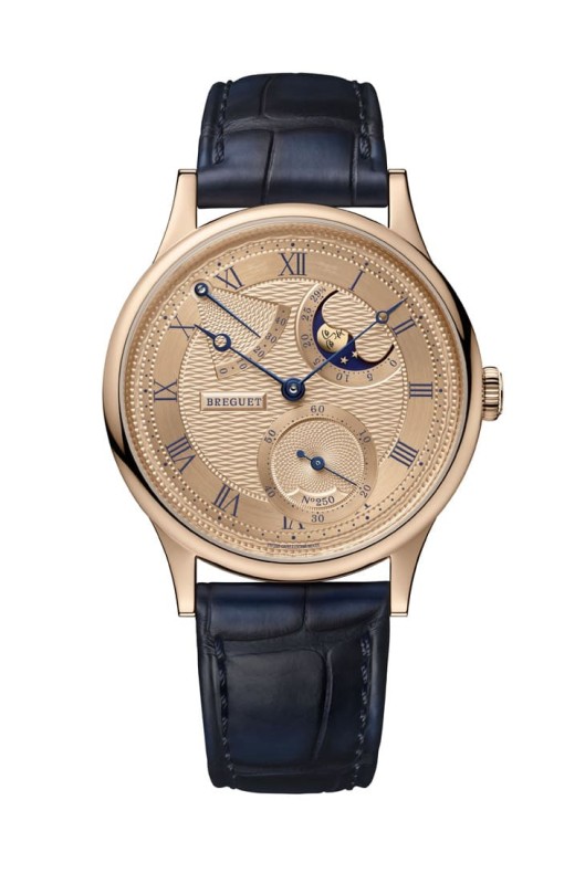 18K宝璣金材质/502.3.DRL自动上链机芯/时、分、小秒显示/月相显示/动力储存显示/Quai de l’Horloge机刻雕花图案面盘/蓝宝石水晶镜面、透明底盖/防水30米/表径39mm/限量250只/参考价:NT$ 2,268,000