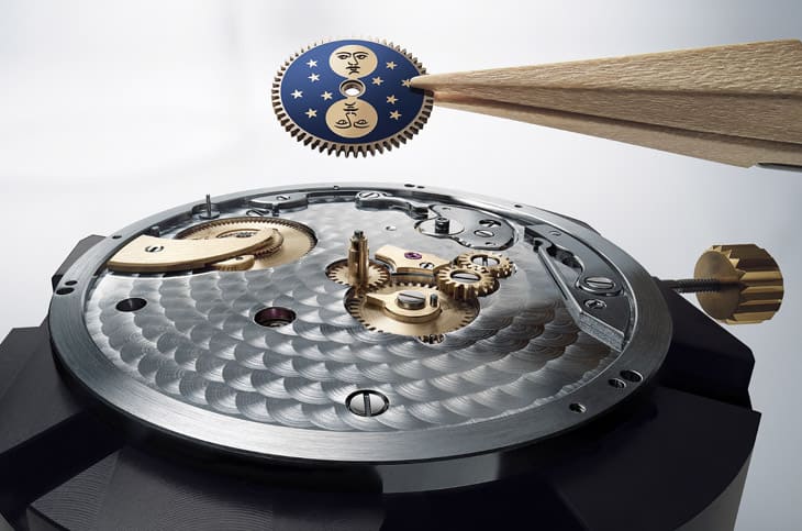 ▲月相盘上的人脸面孔造型与N°5怀表如出一辙,显示设于2点位置也颇为少见。