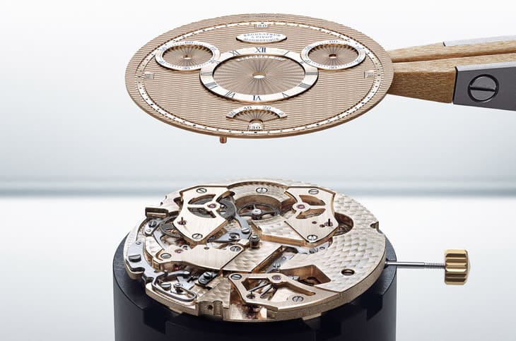 ▲Classique 7225面盘有中央时分显示,双小秒盘与飞返测时结构,呼应宝璣早期计时概念。