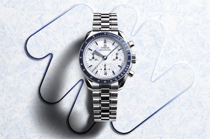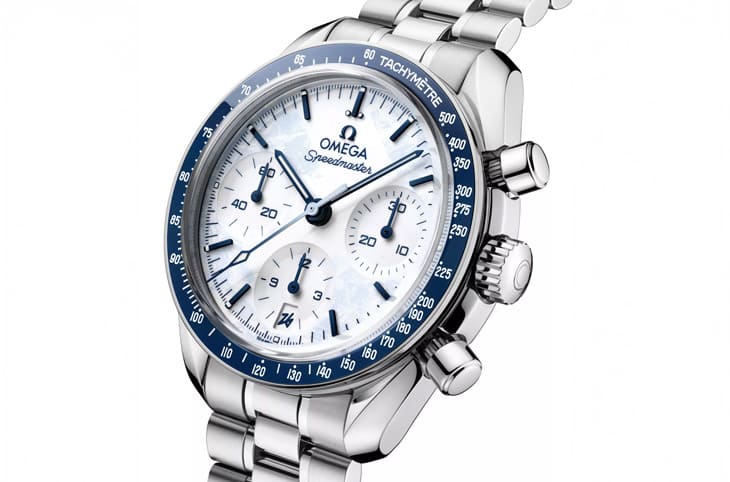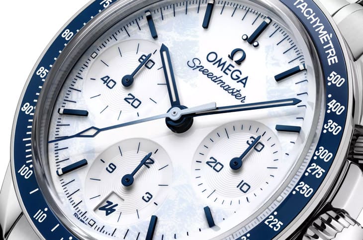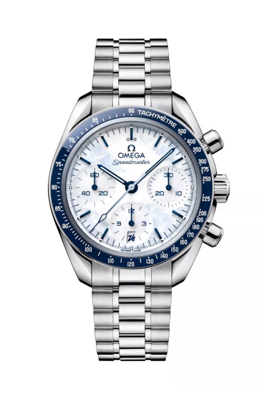欧米茄超霸被冰封了!蓝白「霜面冬奥限定款」细节爆炸 连滑雪坡道纹路都刻进面盘裡