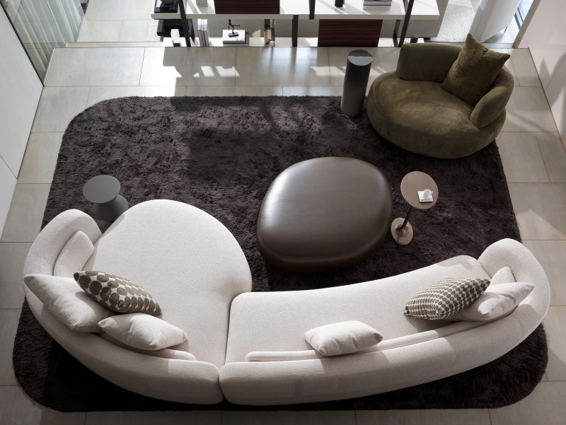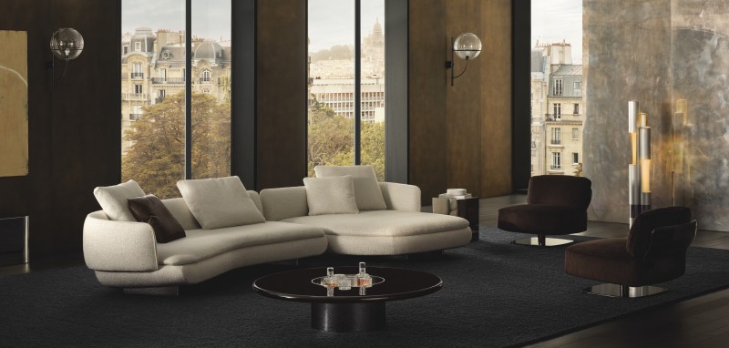 「Saki 是花朵绽放的那一刻,」Oki Sato(Nendo)说。「不是含苞,也不是盛开,而是那个『即将绽放』的状态。」Saki 的造型由坚实外壳与柔软坐垫构成,曲线自底部平面逐渐过渡为立体弧面,创造出轻盈而富节奏的姿态。多模组结构让每个单元都能重新排列,不同组合方式带来全新氛围与使用体验。「Saki 是由细节、比例与手工共同构成的」,这份细腻与节制,正是 Minotti 精神的核心。