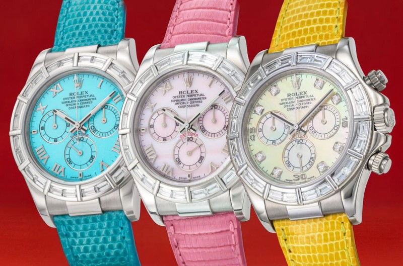 ▲劳力士Daytona「海滩」(Beach)系列镶钻版,预估价为USD 120,000~USD 250,000不等。Source:Christie's