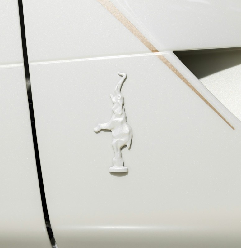 最令人惊嘆的莫过于车侧如流水般律动的线条。这些流动的线条并非简单喷涂,而是由工匠耗费超过 100 小时进行手动遮蔽(Manual Masking)与精密手绘而成。这种「流光」效果在阳光下会随视角转动产生细微的珠光折射,让这辆车在静止时也如同在海中流动的明珠,充满生命的律动感。