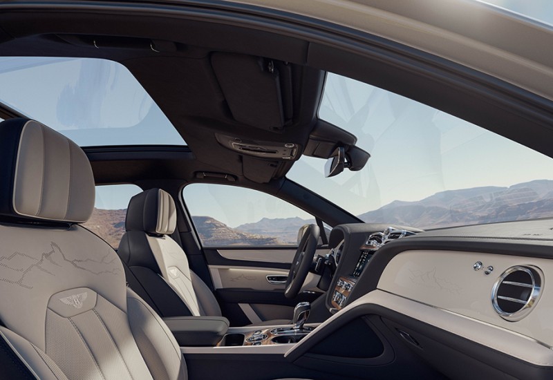 Bentayga Artenara Edition车舱带来一场感官的洗礼,提供八种精心挑选的车身顏色,每种顏色都搭配和谐的内饰,採用三色拼接设计。宾利首次将过往仅限于旗舰车型 Mulliner EWB 的「三色调」室内分色配置引入此版本,打破了传统双色内装的格局,透过三种层次分明的皮革色彩,勾勒出极具深度与艺术感的空间氛围。