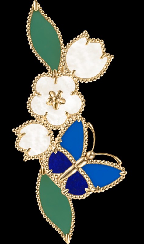 Lucky Spring系列珠宝自 2021 年问世以来,以瓢虫、梅花、铃兰与绿叶为题 。2026年则迎来了五款以黄 K 金打造的新图腾作品 ,加入蝴蝶元素,象徵灵动生机 。作品包含长项链(15 枚图腾)、五枚图腾手链、胸针、Between the Finger 指间戒及耳环 。材质运用:精选青金石、蓝色与绿色玛瑙以及白色珍珠母贝 。精湛工艺:採用经典的双行圆珠围拢装饰宝石,并运用古老的「脱蜡铸模」与手工拋光工艺 。