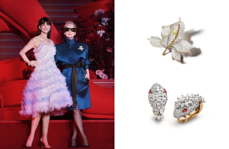 宣传行程来到东京站,安·海瑟薇透过宝格丽 Serpenti 系列顶级红宝石与钻石耳环呈现极致奢华,红宝石的浓郁色彩为整体造型带来了强烈的戏剧张力与不容忽视的权威感。在手部配件上,她藉由 Tubogas 系列的黄 K 金镶钻戒指映衬其自信魅力,举手投足间,不禁让人联想到电影中那些掌握着时尚圈生杀大权的从容瞬间。