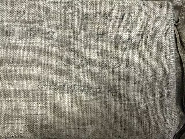 这件救生衣的主人为劳拉.弗兰卡特利(Laura Mabel Francatelli),她是当时社交圈负盛名的英国时装设计师露西.达夫-戈登夫人(Lady Duff Gordon)的首席秘书。他搭乘「1 号救生艇」获救后,在自己的救生衣留下亲笔签名,并邀请同船的倖存者一起签名留念,富豪与权贵们也欣然提笔。虽然救生艇并未满载乘客,仅载了 12人便匆匆离去,但墨跡在光阴的洗礼下依然清晰,彷彿将那夜冰冷的北大西洋寒气,与生还后的餘悸,一同封存在这件织物之中。