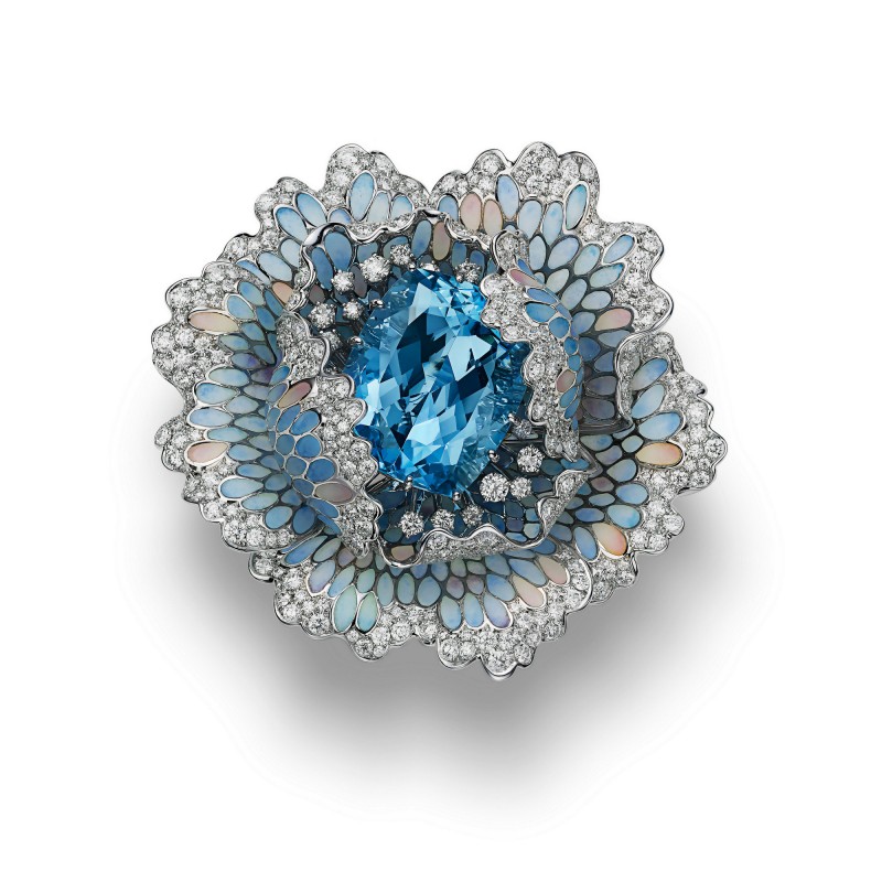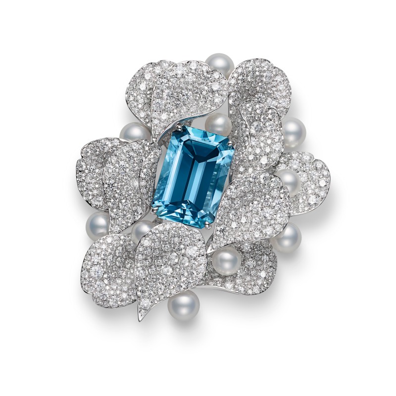 ▲MIKIMOTO顶级珠宝系列-Les Pétales 海水蓝宝石花朵胸针