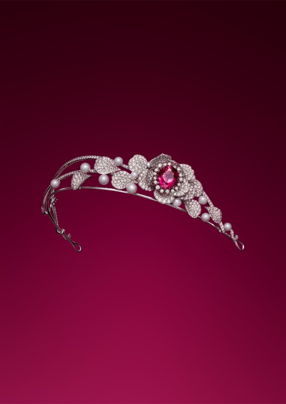 ▲MIKIMOTO顶级珠宝系列-Les Pétales 碧璽珍珠造型头饰
