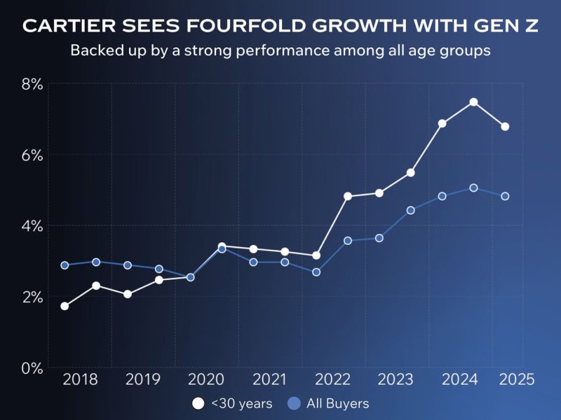 在這股風潮中,卡地亞是最大贏家,品牌憑藉招牌的Tank與Santos系列,成功連結Z世代對時尚與歷史感的雙重需求,然而,市場數據顯示這波正裝錶熱度在第二季略微有降溫,這或許意味Z世代仍在摸索風格邊界,也可能是市場正在短暫修正,儘管如此,他們對市場的推動力已無可忽視,這一群人不僅會買,也懂得讓品牌「被看見」。