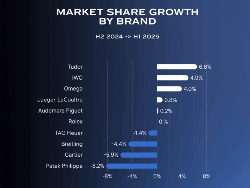 ▲2025年上半年各品牌的二級市場銷售表現。Source:Chrono24、Fratello