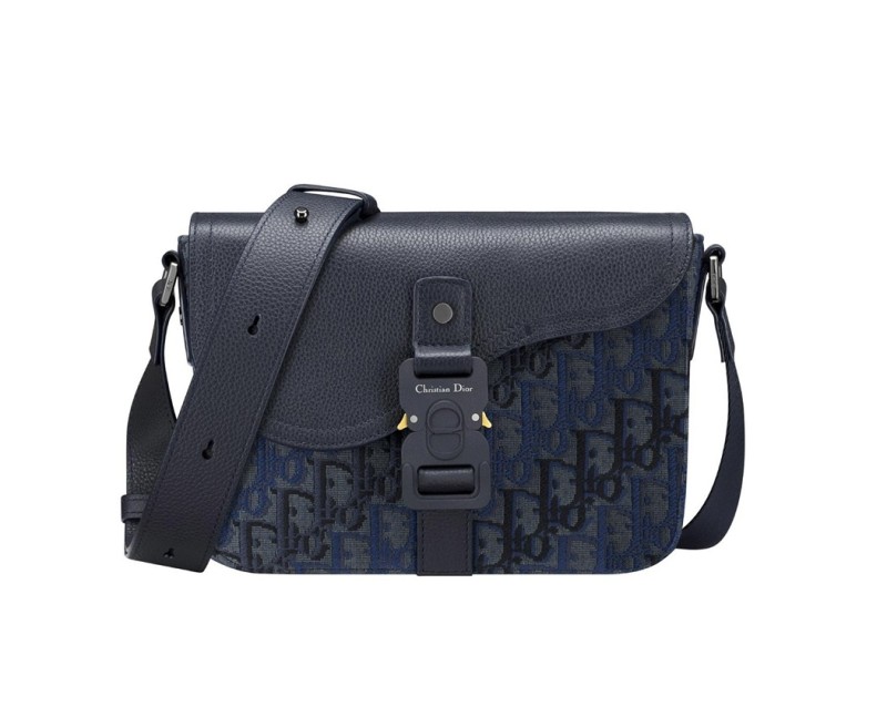▲Dior Saddle黑色與藍色Oblique緹花拼接皮革郵差包,NT$86,000