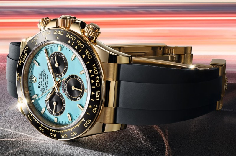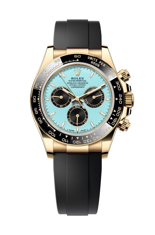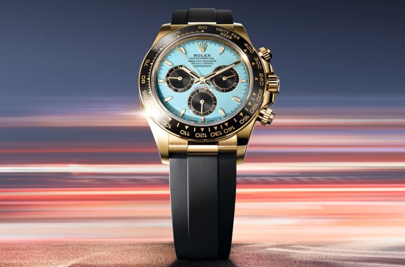 Daytona新作延續經典DNA的同時,亦成功重塑系列的時代表情。黃金與綠松石藍的組合讓這只運動錶更具奢華氣場,卻又保持Daytona應有的功能本質;陶瓷外圈與Oysterflex錶帶的搭配,則在專業與生活之間取得平衡,它像是一場從賽道到城市的接力,一端連結速度與榮耀,一端指向風格與自信。勞力士懂得如何在傳統中尋找創新節奏,這款新作以顏色與質感創造強烈印象;它是速度的象徵、力量的化身,也是佩戴者性格的延伸,當陽光映照於綠松石藍漆面,光澤閃爍間彷彿能聽見引擎轟鳴與時間跳動的聲音,那是一種屬於Daytona的節奏,也是屬於每一位勇於挑戰自我者的節奏。