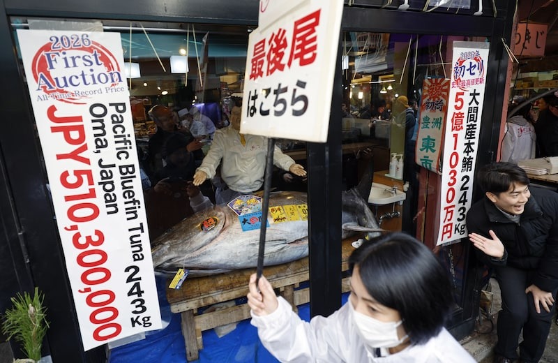 日本東京豐洲市場新年開市首拍再次刷新歷史,2026年1月5日一條重量243公斤、來自青森縣大間町的黑鮪魚,以5.103億日圓、約台幣1億180萬成為「第一鮪魚」,刷新歷史最高紀錄,榮登「全世界最貴黑鮪魚」寶座,象徵為漁業及餐飲消費市場活力滿滿的吉兆。這場拍賣最受矚目的焦點之一,還有得標者連鎖壽司店「壽司三味」(すしざんまい, sushizanma)的母公司喜代村社長木村清,他連續多年在新年首拍中得標最貴黑鮪魚,此次打破2019年金額紀錄,成功重現「鮪魚之王」的傳奇風采。根據估算,此次新春黑鮪魚初競標的拍賣所得,捕獲漁船約可分得4.44億日圓,資深漁師、第11長寶丸號船長伊藤豐一表示,成交金額折合每公斤 210 萬日圓,遠高於平時的一般行情,令人難以置信,話語間難掩興奮之情。