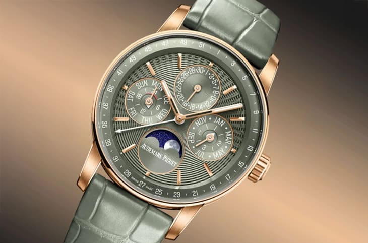 愛彼與江詩丹頓便分別以CODE 11.59與Traditionnelle系列回應這股趨勢,前者將CODE 11.59縮至38mm,導入無需工具的專利錶冠調校系統,結合現代建築感錶殼呈現前衛美學;江詩丹頓則回溯1980年代,將Traditionnelle萬年曆維持36.5mm經典尺寸,搭載超薄機芯重現黃金年代的優雅比例,這兩款手錶不僅展示尺寸纖薄的可能,更分別體現了現代創新與古典傳承的製錶哲學,是高級手錶在方寸之間的巧思與極致工藝。