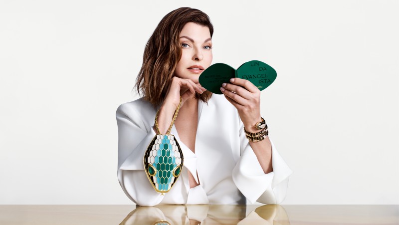 ▲加拿大超模Linda Evangelista演繹BVLGARI ICONS Minaudiere系列Serpenti晚宴包