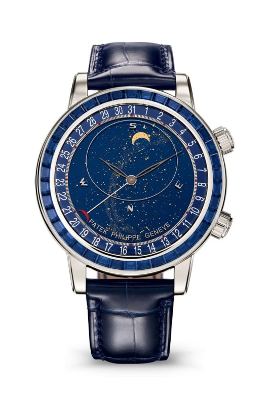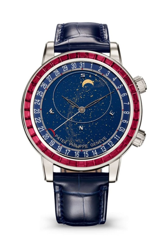 除了Nautilus系列,百達翡麗也沒忘記自家最詩意的Celestial星空錶,Grand Complications Ref. 6104這次補齊了藍寶石、紅寶石與祖母綠三種珠寶版本,錶圈鑲嵌38顆寶石,在夜空視覺上多了一層立體層次;有趣的是,藍寶石與紅寶石的總克拉數並不相同,顯示兩者在尺寸配置上的細微差異,而祖母綠版本依舊是最稀有、價格最高的選項,但也因寶石特性,反而最不適合日常佩戴,典型「收藏大於實用」。