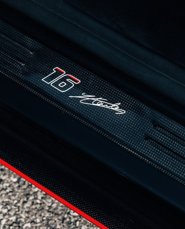 最引人入勝的細節在於「摩納哥色彩」的注入。為了向家鄉致敬,Leclerc 在後視鏡蓋、大型固定式尾翼的端板處,點綴了象徵摩納哥國旗的紅白配色。此外,車身側邊與細節處更融入了他在賽場上的專屬標誌——「16」號賽車號碼,配合國王白(Bianco King)線條勾勒,讓這台超級跑車彷彿是將 F1 車隊精神直接「穿」在身上的道路版賽車。