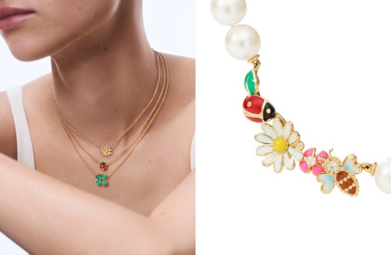 本季Diorette共推出多款造型項鍊。其中,18K金彩漆珍珠項鍊巧妙結合了18K金、鑽石、彩漆與珍珠等豐富材質,將自然之美轉化為富詩意的設計,向迪奧先生摯愛的花園致敬,也為配戴者注入靈動魅力 。而18K金彩漆雛菊造型項鍊則運用鑽石與彩漆交織出雛菊的盛放姿態,點綴出春日般的明媚卻不失優雅的氣質 。