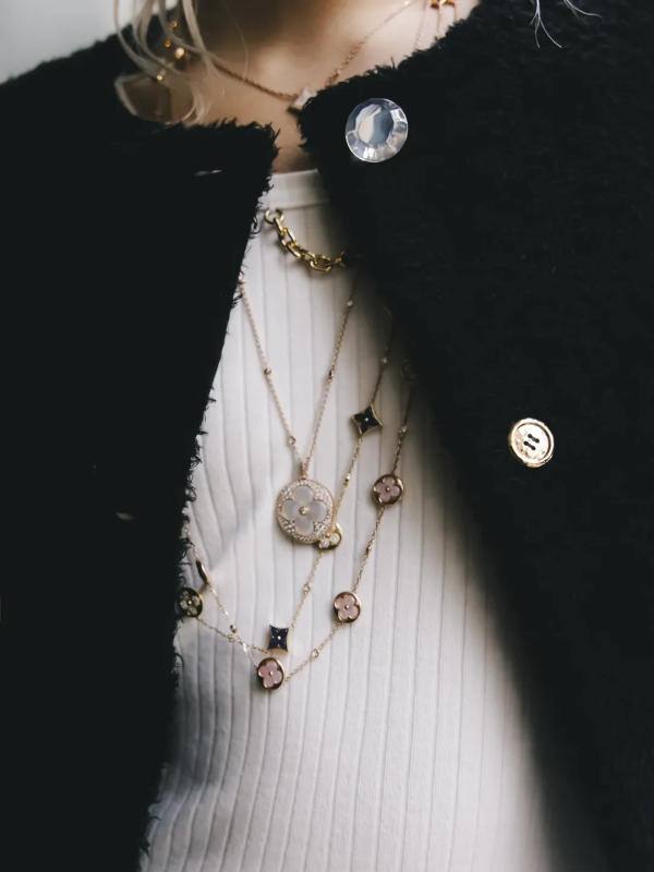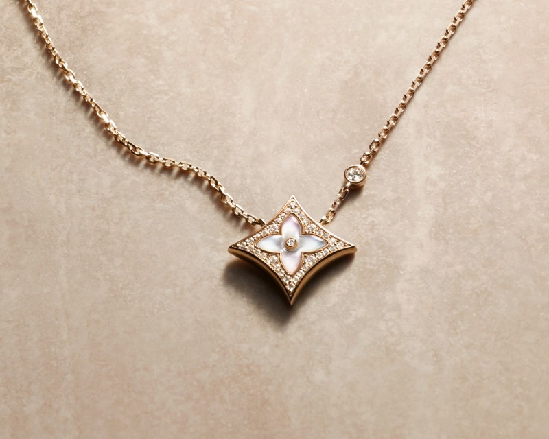 延續Monogram的創意精神,Color Blossom系列也進一步豐富了日常佩戴的多樣性。新作中推出了交替呈現太陽和星星圖案的新款短項鍊,提供粉色珍珠母貝或孔雀石材質供選擇;另一款精緻的長項鍊則將雙圖案與粉色、白色珍珠母貝相互混合。此外,適合疊戴和混搭的新款封閉式戒指,以及現代的圈形耳環,皆為整個系列增添了豐富的層次。品牌甚至推出了一款鑲鑽耳扣,為系列注入時尚前衛的氣息。最後,廣受歡迎的粉紅色珍珠母貝設計也增加了五款新作品。