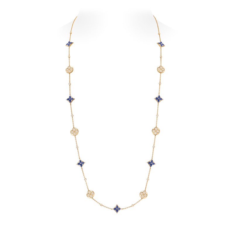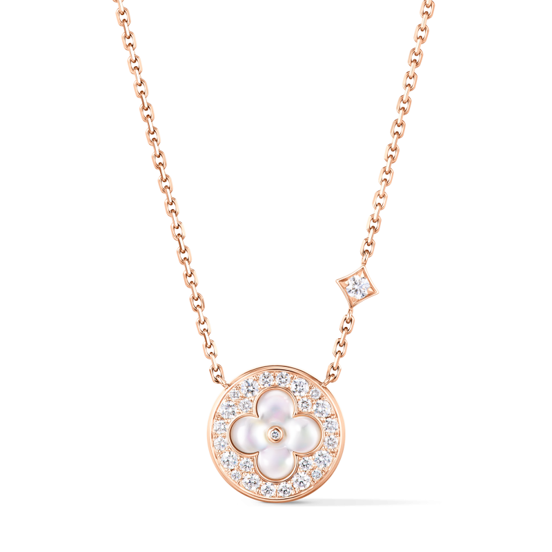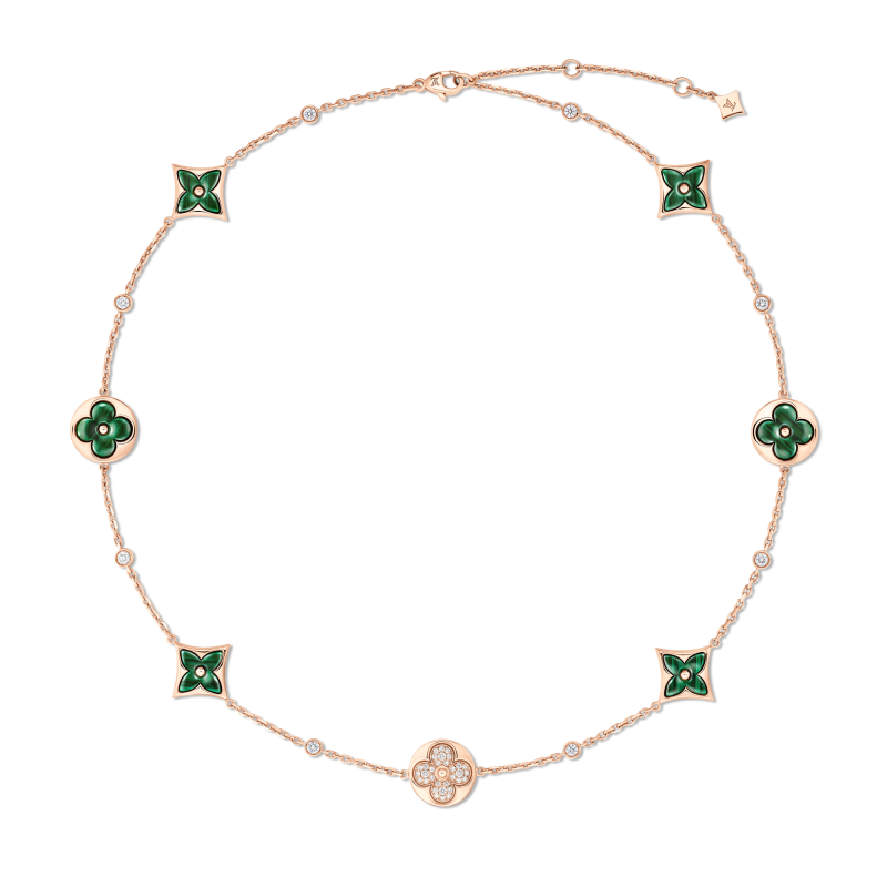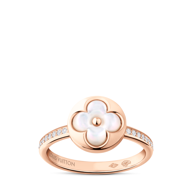回溯至1896年,Georges Vuitton為紀念父親,將對家族傳承的深厚敬意化為不朽印記,創作出今日品牌標誌性的 Monogram 圖騰。這朵最初生長於經典行李箱帆布上的四葉花卉,其中心圓點的靈感源自早期行李箱上的黃銅鉚釘,不僅完美捕捉了 19 世紀末的美學輪廓,更在往後的一百多年間,成為路易威登取之不盡的藝術靈感泉源。以此經典輪廓為核心,品牌於2015年正式推出Color Blossom系列,將平面的Monogram轉化為立體珠寶,一直以來皆以精心雕刻的珍珠母貝、縞瑪瑙和孔雀石等彩色寶石為特色,賦予經典圖騰嶄新的面貌。