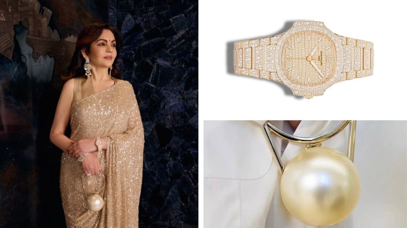 除了這件具備情感重量的紗麗,Nita Ambani 的配件更是將「極致奢華」推向巔峰,佩戴了一枚極為稀有的百達翡麗腕錶,鑲嵌了2,364 顆精選鑽石,這只滿鑽腕錶總價值估計接近 4 億盧比、約 1.5 億台幣。在簡潔的紗麗線條襯托下,鑽錶與碩大的祖母綠及鑽石首飾交相輝映,展現出印度王室般的尊貴氣場。PP腕錶是一只記錄時間的工具,更是對「傳承」最嚴謹的註解,其稀缺性與工藝價值,成為家族遺產清單中最重要的資產之一,相信對 Ambani 家族而言,這是一份傳給未來的信物。