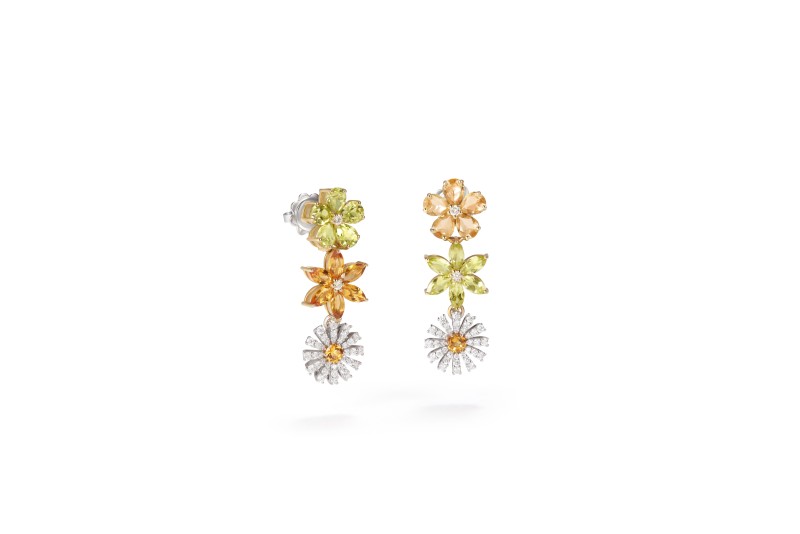 ▲DAMIANI Margherita Bloom瑪格麗特系列耳環。材質:白金、黃金橄欖石、黃水晶、鑽石。參考價格:NT$ 316,000。