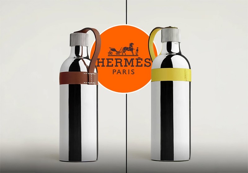愛馬仕水壺設計靈感來源於早期的登山水壺與軍用軍筒,帶有一種向大自然探索與冒險致敬的底蘊,但這份粗獷的原始感,透過精密的金屬工法與皮革裝飾進行了華麗翻轉。水壺頂端的肋紋瓶蓋有如高級機械錶的錶冠,具有防滑效果,連接瓶身的Spad Taurillon皮革背帶,頂部飾有馬鞍形鉚釘。水壺底部的皮革圓盤,上面印有「Hermès Paris」字樣,亦是訴說著品牌與馬具製作的深厚淵源。