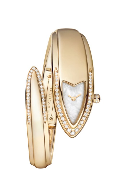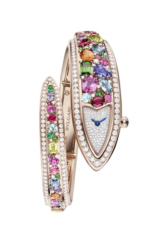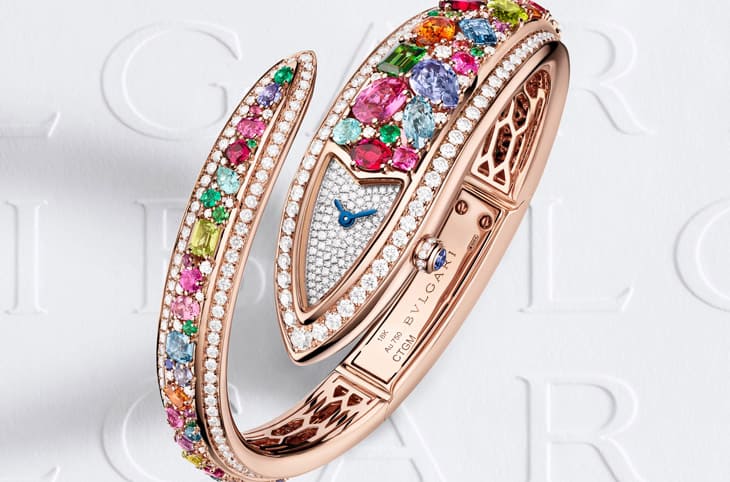 Serpenti Aeterna這個系列幾乎已經不在「手錶」的範疇,而更接近藝術品,其以立體雕塑的方式重構蛇形,再透過大量彩色寶石與鑽石鋪陳,創造出強烈的視覺節奏。針對玫瑰金版本,寶格麗用了122顆彩色寶石,涵蓋各種色系與切割方式,再搭配近500顆鑽石,光是寶石篩選與前置處理就花了185小時,整體製作更超過數百小時,這種等級的作品,其實重點已經不是「時間顯示」,而是品牌在珠寶領域的完整實力展現。另一款黃K金鑲鑽版本則相對「收斂」,但透過模組化設計,可以跟其他手環疊戴,反而更貼近日常佩戴邏輯,這種一張一弛的策略,也看得出寶格麗對市場的理解。