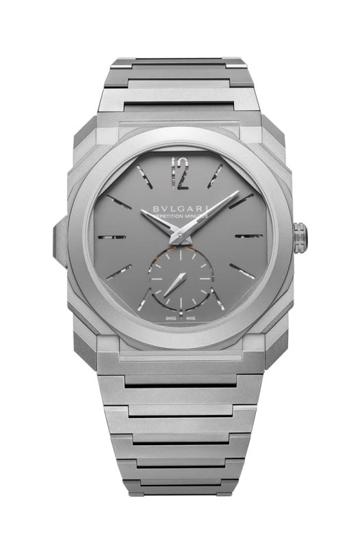 若你以為寶格麗2026年只是在講「日常佩戴」,那就太小看他們了,在複雜功能領域,他們還是照樣把難度拉滿。首先是37mm版本的Octo Finissimo Minute Repeater,三問報時這種功能,本來就已經夠難,還要做到超薄,更是難上加難。但寶格麗偏偏就是要在這裡證明實力。選擇鈦金屬錶殼不僅是為了輕,還是為了聲音效果,鈦的共鳴特性比貴金屬更乾淨,再加上鏤空時標設計,讓聲波傳導更直接,結果就是聲音不只清楚,還很有層次,手錶搭載的BVL 362機芯厚度僅3.12mm,這種數字放在三問領域,幾乎就是「不合理」的存在。