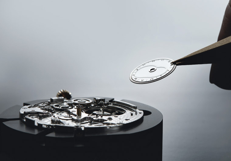 ▲宝璣研发的时间等式凸轮极为纤薄,置于透明蓝宝石圆盘之上,按月校准时间等式的时间差。