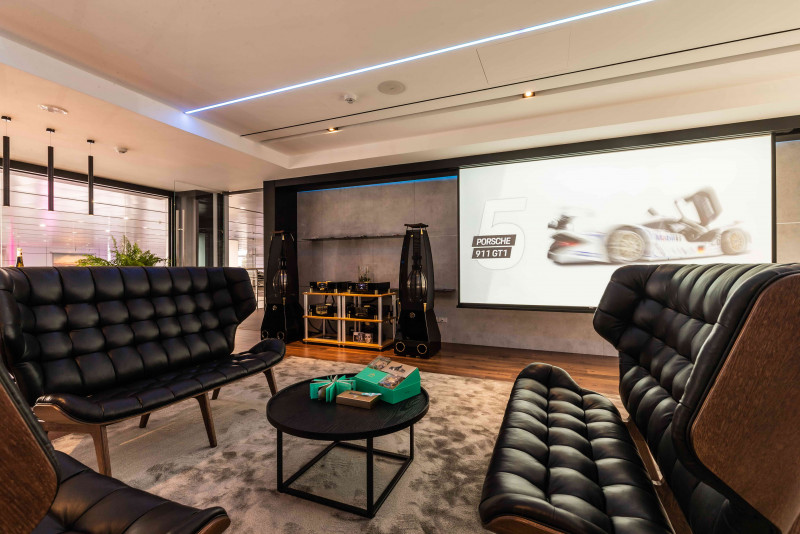 在展间二楼区域,更规划了保时捷全球展示中心首见的「Porsche Werk 1保时捷客厅」,是隐密性极高的车主专属交谊空间,由Porsche德国原厂设计师特别为保时捷新北专案设计,再加上诚品生活(the eslite spectrum)顶级饭店等级的专业餐饮设备规划,让每一位消费者都能亲身感受到宾至如归的顶级软硬体服务。