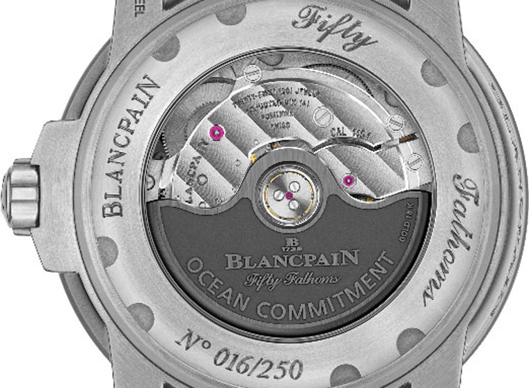 2018年宝珀延续2014和2016年皆推出为保护海洋环境而特设的公益表款——「心系海洋」限量版,与之前不同的是,前面两代心系海洋限量版都是以Bathyscaphe系列为基础,发展到第三代宝珀才终于把目光移回五十噚系列身上,这款的设计和先前五十噚系列大同小异,但是包括採用蓝色面盘、表圈,并在面盘六点方向加上「心系海洋」公益事业的Logo等专属设计,都让这款限量版多了更诱人入手的吸引力,更别提它只限量250只、每售出一只宝珀还会捐出1000欧元作为支持保护海洋公益之用,显得格外有意义。