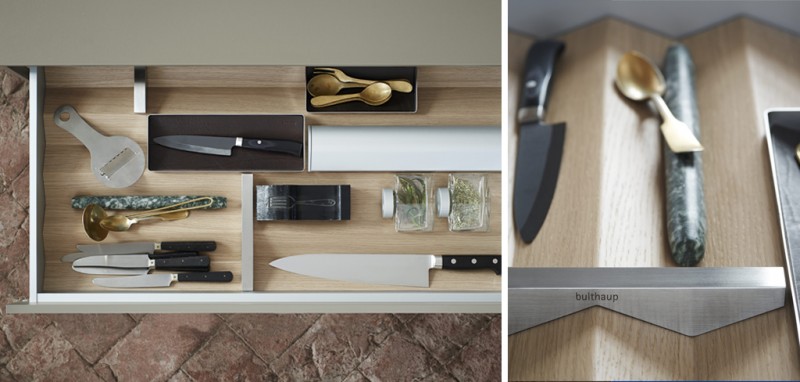 ▲檯面下的抽屉设计,bulthaup b3让每样厨房器具皆能一目瞭然、唾手可得,山形功能板设计,创造出有组织又整齐的储存空间