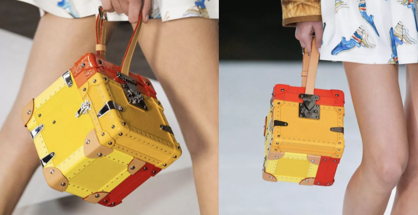 最后在以前出现过的硬箱风的包款,也在2019春夏中有所变化。在外观上除了以往经典Monogram花纹外,此次也增添了许多鲜艳的色彩。例如黄色、橘色的拼接,大胆的用色以及鲜明饱和的色调,无疑都是让硬厢包款增添活力。