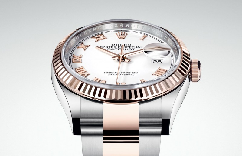 18ct永恒玫瑰金、不锈钢材质/3235自动上链机芯/时、分、秒、日期显示/蓝宝石水晶镜面/防水100米/表径36mm/参考价:NT$ 362,000