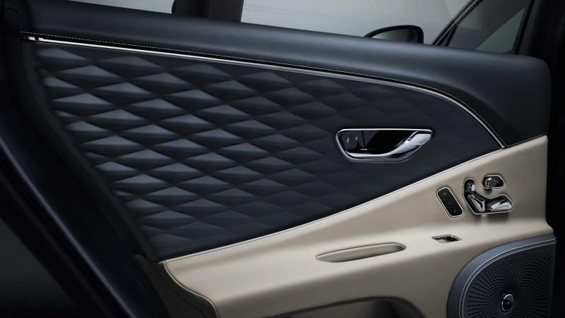 内装使用作工精细的金属饰条或实木饰板,可以选配 Mulliner Driving Specification 驾驶套件。而这次中控台上方的旋钮及出风口等处使用类钻石贴片饰板,数量多达 5331 个。还有Bentley 独有的的三片式翻转多媒体触控萤幕,全新 12.3 吋多媒体萤幕支援 Apple CarPlay、Android Auto 等手机连结功能。