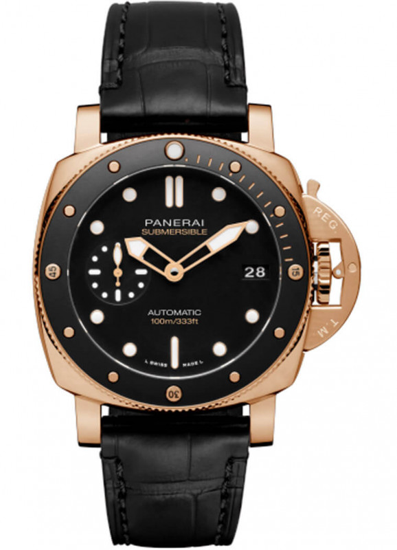 PANERAI沛纳海的Submersible系列以防水性佳的潜水表为主,这系列通常都是用不锈钢或钛金属等材质制作表壳,不时也会出现Carbotech、BMG-TECH等这种高科技又强调保护性的新材质,但近期品牌推出了一款新作PAM00974倒是有点不一样,它是目前Submersible系列中除了特别版以外定价最高的款式,主要原因在于它採用了贵金属表壳,而且它也是目前这系列中唯一一款贵金属材质的手表,所以多少会比较受到瞩目一点。