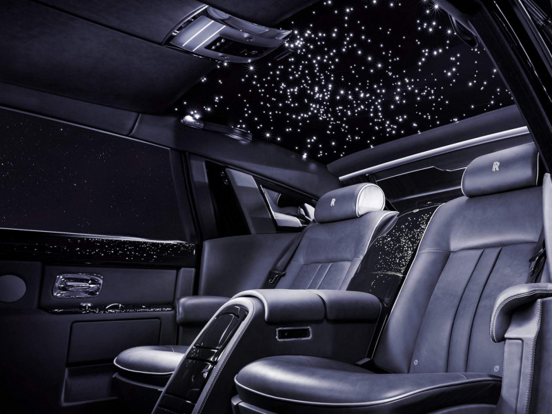 还有一个特别的亮点是「星光顶蓬」,由1344根光纤灯提供了夜晚星空的幻觉,当引擎启动时,乘客的头顶上流淌着十几颗流星,听起来很俗气,但在黑暗中行驶时是能让人上癮的因素。