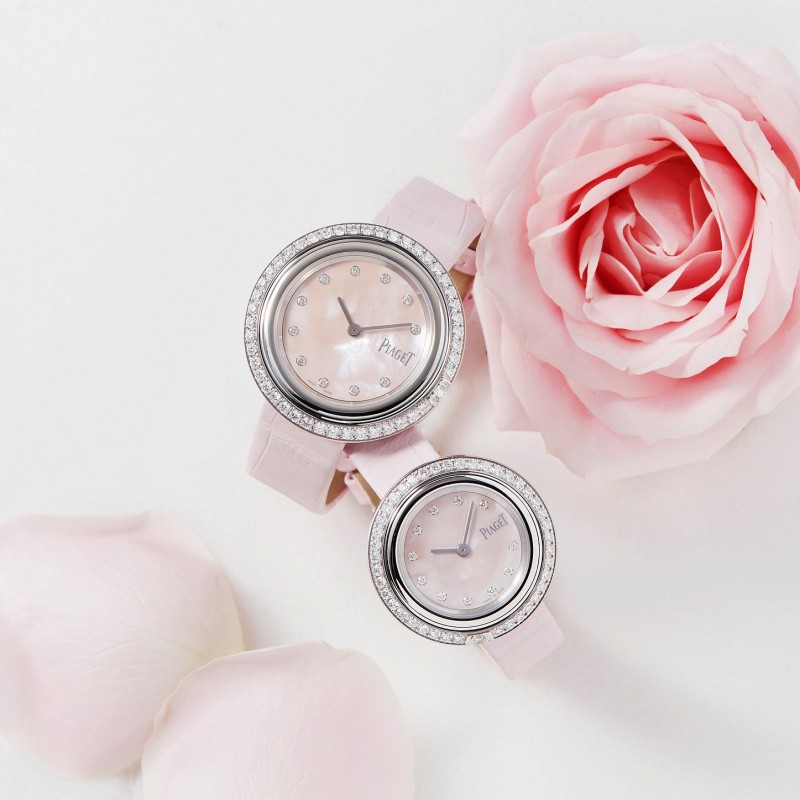 伯爵「Possession系列」将「拥有」作为爱情关系的确认,除了适合日常穿戴的轻珠宝,在2020七夕情人节前夕,再推出Possession系列浪漫腕表新作,成为相恋的见证。以粉色珍珠母贝、同色顶级鱷鱼皮表带,搭配直径29mm和34mm两只表款,粉红色的云悄悄地吹入了圆形表盘,11颗星辰般美钻时标如漂浮于甜蜜云端,恰如爱神以画笔晕染过情人的腕间,展现情竇初开时怦然心动的娇态与恋爱时的甜蜜。