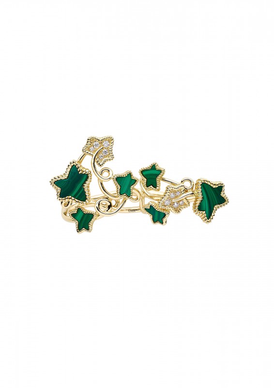 系列呈现 Victoire de Castellane 自由奔放的标志性创意,运用独特翠绿色泽的孔雀石、散发耀眼光芒的黄金,点缀如晨露般于枝叶上闪烁的璀璨美钻。精湛工艺透现欢愉气息,令人沉醉在 Dior Joaillerie 的瑰丽花园。在品牌合作的高级珠宝工坊内,资深工匠以嫻熟技巧锻造黄金,运用多种工艺镶嵌珍贵宝石,为作品挹注蓬勃朝气。