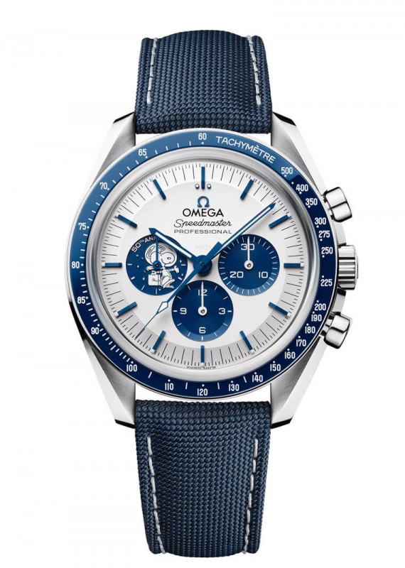 新款超霸史努比手表外型延续前一代的风格,包括不锈钢材质的42mm表壳以及下三眼的计时表盘等等,不过相较于前作的白黑色调,新款超霸史努比手表则是改以白蓝配色重新出发,包括表圈、指针、时标、小表盘乃至尼龙布料表带等都换上蓝色,使得登月表旗下这个「史努比」家族发展三代以来,每一代都在相近的创作基础下延伸出鲜明的个性。