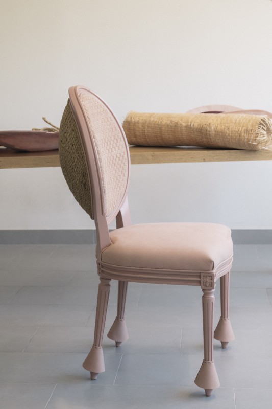 Khaled El Mays 重新诠释的三把圆背椅展现精湛的手做工艺,尤其是编织技巧,带领人们踏上迷人的旅途,探寻他的灵感之源。他出生于黎巴嫩,早期接受建筑训练,也是迪奥先生最初投入的领域。Khaled El Mays 创意来源,一是观察周遭的环境;二是在自身东西方双重文化之间的对话,带给他无限丰富的灵感。他继承母亲的使命,在贝鲁特建立自己的工作室,并且以他的第一个设计系列致敬黎巴嫩之美。使用在地工艺与合法取得的素材是他工作的核心价值;他为 Dior 设计的独特作品,展示了他在美学方面所青睞的解构过程。每件作品都代表过程中的一个阶段,从尊重原始比例的重新诠释,到改变用途与价值的重塑外型,最后再到完全解构。此系列格外引人注目,捕捉了历史物件的经典本质,引领作品以其前所未见的方式超越时间限制。