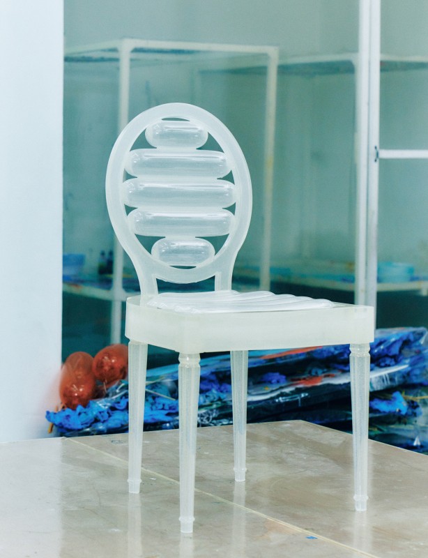 Seung-jin Yang 用「简单、独特、有趣」来描述他对 DIOR 圆背椅的重新诠释。他的灵感来自于特性迥异的物体间所产生的矛盾,曾以精湛的技艺于气球傢俱系列中呈现;现在,他将 DIOR 的符号变成挑战想像力的趣味创作。这位韩国艺术家用环氧树脂形塑不同气球,重新打造结构、椅座与椅背,象徵脆弱与不稳定性。作品令人愉悦、带来惊奇,同时展现庄重与典雅气质和高超的工艺技巧。