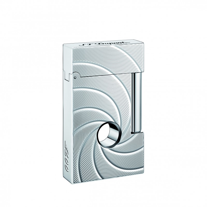 Ligne 2打火机和Line D笔具,其手工鐫刻饰纹覆盖黑色中国漆表层,以及黄金手工雕刻饰纹款可供选择,加上特别的拋光处理,彷彿电影中追逐情节的光影摇摆,机身採用象徵枪眼的圆形挖空设计,从打火机的中心点穿过,再进行拋光内壁处理,提供黑色PVD蒸镀与鈀金润饰两种材质选择。而Minijet打火机则以神祕黑色作为机身,强大的火炬式火焰,鐫刻007的标志与45度扭索纹,势必掀起另一波喜爱特务角色的收藏家所喜爱。